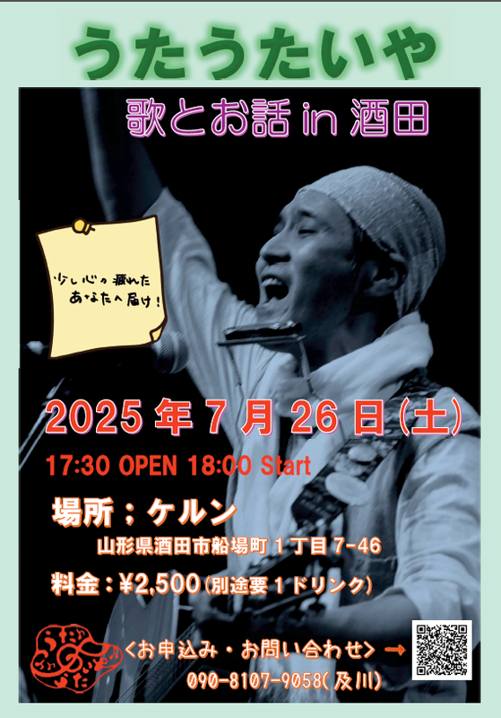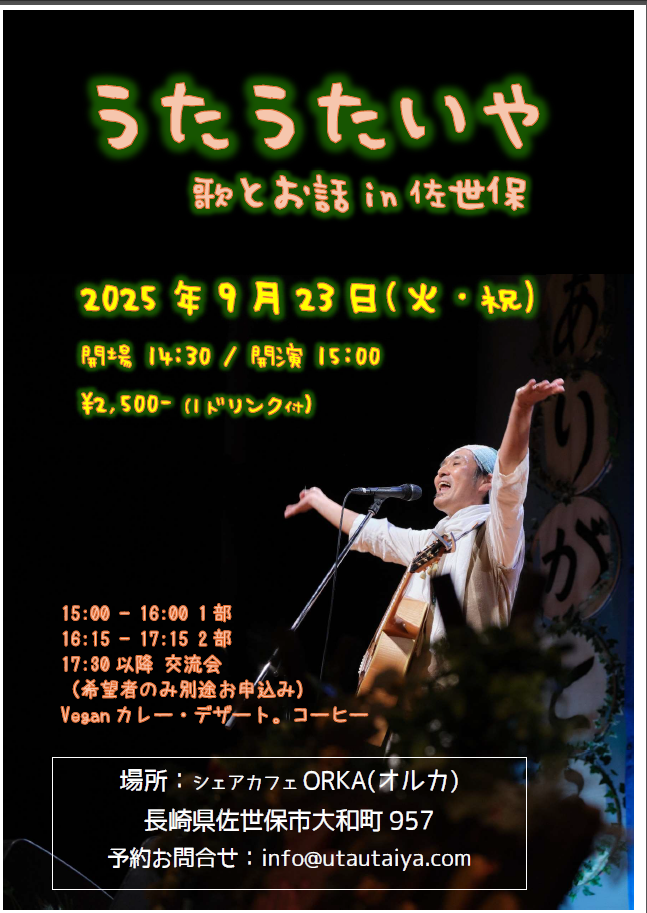 問合せ info@utautaiya.comまたは090-1016-1602(R‘Café)
