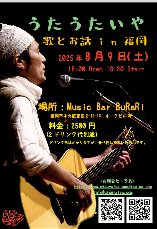 問合せ info@utautaiya.comまたは090-3789-8597(小田川フォーク村)